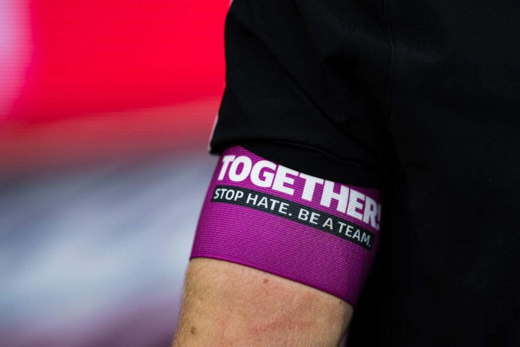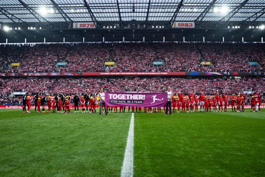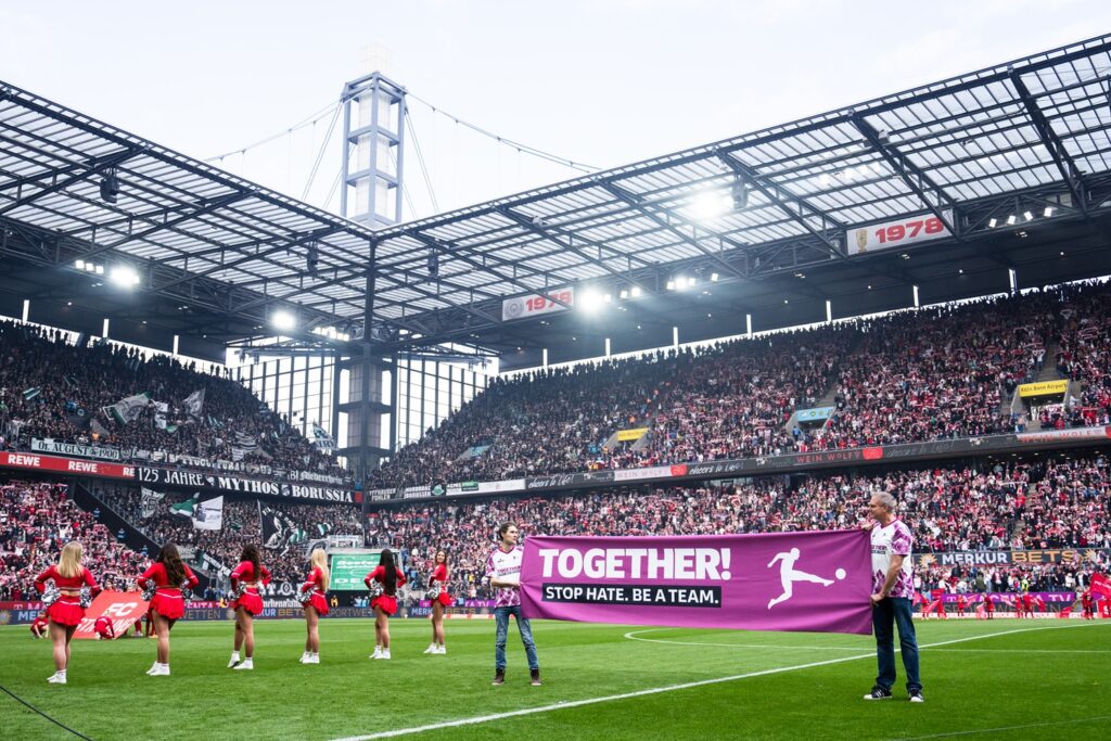 In allen Stadien der Bundesliga und 2. Bundesliga war die TOGETHER!-Kampagne unmittelbar erlebbar. Banner, LED-Banden, Auswechseltafeln, Kapitänsbinden und Stadiondurchsagen sorgten dafür, dass die Botschaft „TOGETHER! Stop Hate. Be a Team.“ präsent blieb.