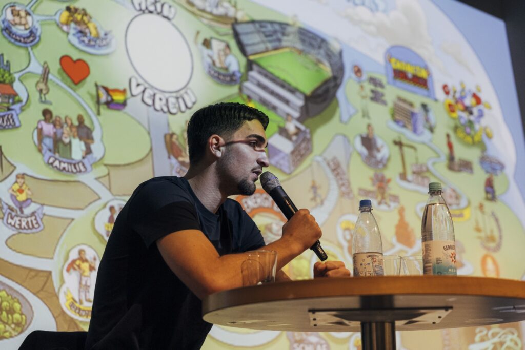 Ein zentraler Bestandteil der Aktionswochen war das Engagement des Lernort Stadion e.V.. In den vergangenen vier Wochen nahmen über 1.200 Jugendliche an Workshops in den Lernzentren der Stadien teil. Insgesamt 25 Lernzentren setzten vielfältige Bildungsangebote um. Mit Themen wie „Desinformation und Hass im Netz“ in Leipzig, „Antidiskriminierung“ im OstKurvenSaal in Bremen oder den „Münsteraner Wochen gegen Rassismus“ im Lernort Preußenstadion. Ziel aller Formate war es, junge Menschen im Umgang mit Mobbing, Diskriminierung und Ausgrenzung nachhaltig zu stärken. Ein besonderes Highlight fand in Mönchengladbach statt: Nachwuchsnationalspieler Elias Vali Fard stellte sich im Workshop zum Thema mentale Gesundheit den Fragen der Teilnehmenden und gab persönliche Einblicke.